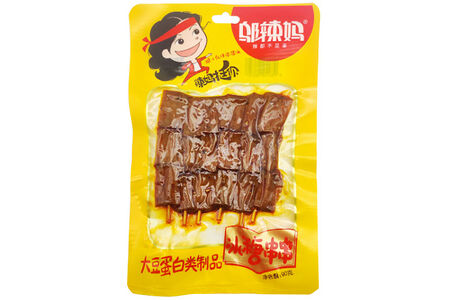 Острые шашлычки из соевого мяса. Состав: Глютеновая мука, соевое мясо, соль, кунжут, перец, зира, сычуаньский перец, анис,сорбат калия, глутамат натрия. Срок хранения: 8 месяцев