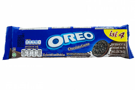 Oreo c начинкой из шоколадного крема. Состав: пшеничная мука, сахар, не гидрогенизированное растительное масло (пальмосодержащие антиоксиданты TBHQ INS319), какао-порошок, сироп фруктозы, бикарбонат натрия (INS500 (ii)), бикарбонат аммония (INS503 (ii)), кукурузный крахмал, соль, эмульгатор (соевый лецитин (INS322)), ароматизатор (ваниль).Может содержать молоко и арахис. Пищевая и энергетическая ценность на 28,5 г продукта: 140 ккал, белки 1,2 г, жиры 6 г, углеводы 20,4 г, натрий 130 мг.