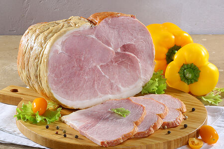 Варено-копченый окорок с нежным вкусом и приятным ароматом дымка – великолепный деликатес для праздника и на каждый день. Отличается плотной консистенцией, мраморным рисунком и ярким ароматом копчения. Тонкая корочка копчения придаёт этому блюду особенную элегантность. Окорок производится по собственному Стандарту качества МясновЪ: в составе только разрешенные законодательством пищевые добавки в минимальном количестве, необходимом для промышленного производства.