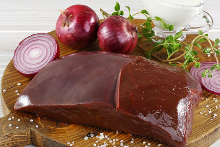 Благодаря тому, что печень не подвергалась заморозке, она сохранила свой насыщенный вкус и максимум полезных веществ. Говяжья печень отличается небольшой горчинкой во вкусе – замочите печень в молоке на 30-90 минут, если хотите её убрать. По содержанию полезных веществ говяжья печень не уступает мясу: содержит витамины А, Е, D и группы B, много калия, натрия и магния. А ещё в 100 граммах печени – суточная потребность человека в железе, участвующего в образовании гемоглобина.