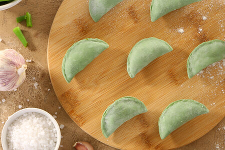 Эти позитивные вареники повышают аппетит и улучшают настроение! Все мы едим сначала «глазами». Вот почему яркая, красивая цветная еда – модный тренд. А мы готовим то, что нравится вам! Тесто в нежно-зелёный цвет мы окрасили с помощью натурального красителя – сока шпината. Тесто - тонкое, но эластичное. Такие вареники не растрескаются при заморозке и не разварятся. Мы любим, когда много начинки, поэтому в каждом варенике её ровно половина. Ярко, вкусно, сытно, полезно! Продукт подходит для вегетарианцев и соблюдающих пост.
