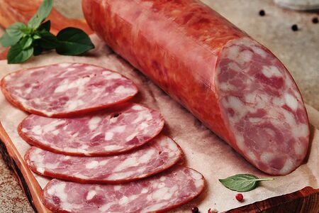 Колбаса из крупнорубленой отборной свинины и говядины. Шпик отвечает за сочность и красивый рисунок на срезе, похожий на узор. Насыщенный мясной вкус дополнен пикантными нотками пряностей.
