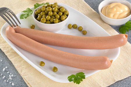 Сочные сосиски из свинины в белковой оболочке с ароматом чеснока, черного перца и тмина, мгновенно вызывающим аппетит.