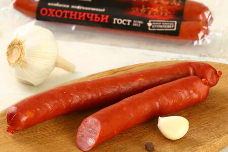 Приготовить на углях, в солянку, пиццу. С того момента, как ГОСТ закрепил рецептуру Охотничьих колбасок, гастрономическая культура менялась, а сами колбаски оставались любимым продуктом поколений. Именно такие, настоящие полукопченые Охотничьи колбаски, «с тем самым» вкусом и качеством производит МясновЪ. Мы бережно храним лучшие традиции. Копировать хорошо знакомые названия, но изменять составы ГОСТ – для нас неприемлемо. Мы используем отборное охлажденное мясо, только разрешенные ингредиенты и строго соблюдаем технологию. Свинина, говядина, шпик, чеснок, пряности и копчение на древесной щепе - всё вместе это незабываемый аромат и вкус Охотничьих!