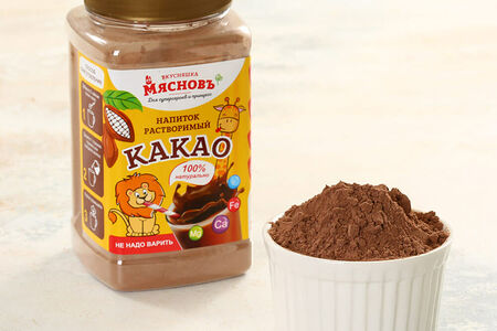 Какао растворимый МясновЪ ВКУСНЯШКА – вкусный, полезный и питательный растворимый шоколадный напиток для растущего организма. Какао содержит минералы ( калий, кальций, магний, железо, фосфор) , витамины ( А, В1, В2, В3, Е) и множество других важных для организма соединений . Он не только заряжает положительной энергией, но и насыщает организм полезными веществами на весь день. Помогает организму вырабатывать "гормон радости" – эндорфин, улучшает работу мозга и память, стимулирует кровообращение. Это 100% натуральный продукт! Попробуйте вкусный напиток для хорошего настроения!