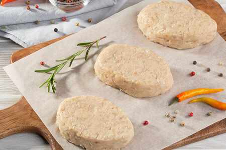 Куриный фарш для котлеток изготавливается из филе грудки курицы (50%) и филе куриного окорочка с кожей (30%), что придаёт котлеткам особенную сочность и мягкость. Душистые за счёт добавления тщательно подобранного букета специй и нежные, эти котлеты станут незаменимым блюдом для ценителей диетической пищи.