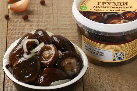 Отборные грузди замаринованы по старинному рецепту. Обладают насыщенным грибным вкусом с пикантными нотками лука и чеснока. Прекрасно подойдут в качестве закуски на праздничном столе, а также как ингредиент для салатов, холодных закусок и горячих блюд.