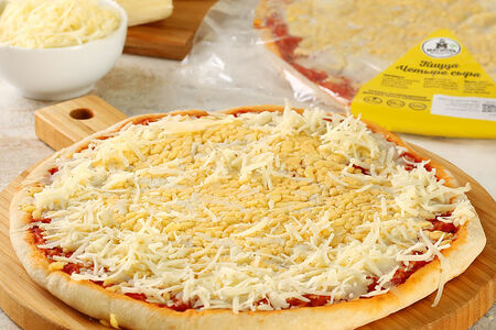 Итальянская пицца за 5 минут! Основа пиццы Четыре сыра – мука, привезенная прямо из Италии, чтобы добиться нужной воздушности теста и хруста корочки. Тесто для пиццы Четыре сыра готовим 24 часа: после замешивания мы убираем его в камеру для ферментации. Тесто становится легким и приобретает насыщенный вкус и аромат. Долгое созревание не требует добавления большого количества дрожжей – этого ингредиента в составе нашей пиццы менее 1%. В начинке простые, но натуральные и качественные ингредиенты: протёртые томаты, специи, четыре вида сыра, в том числе моцарелла с собственного Молзавода – она идеально плавится и тянется на готовой пицце. Мы почти приготовили пиццу – Вам останется только поместить её в микроволновку или духовой шкаф на несколько минут для расплавления сыра.