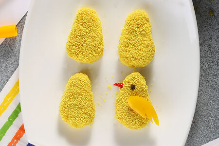 Диапазон веса: от 0,02 до 0,025 кг Уникальные свойства: Знаете, кто наш самый «большой» начальник? Ваш ребёнок! А что любят маленькие «биг боссы»? Наггетсы! Вы сразу заметите их на витрине в магазине – по ярко-жёлтому цвету. Никаких промышленных добавок! Цвет продукту придаёт куркума, добавленная в панировку. Под ней - сочное, нежное, полезное филе курицы. Таким и должно быть любимое блюдо малышей. Наггетсами похрустим, без капризов всё съедим! Описание: Яркие, аппетитные, хрустящие наггетсы готовятся из филе куриной грудки и окорочков. Благодаря такому сочетанию наггетсы получаются очень сочными. А благодаря «крепкой» панировке мясной сок остается внутри. Кухни мира: Американская Наличие лука: Нет лука Наличие соли: Умеренно соленый Острота: Не острый Энергетическая ценность на 100 г кКал: 180 ккал кДж: 757 кДж Пищевая ценность на 100 г Белки: 17,9 г Жиры: 6,3 г Углеводы: 12,9 г Как приготовить: Время на подготовку: 0 мин. Время приготовления: 7 минут. Возьмите сковороду с антипригарным покрытием и средними по высоте бортиками. Поставьте ее на сильный огонь и хорошенько прогрейте пару минут. В горячую сковороду налейте растительное масло и прогрейте его 20 секунд. Выложите на сковороду наггетсы, убавьте огонь до среднего, жарьте без крышки примерно по 2 минуты с каждой стороны до образования золотистой корочки. Уверены, блюдо точно получится вкусным, если чётко следовать инструкции! Условия хранения Срок хранения: 48 часов Температура хранения: от 2 до 6 °С Производитель: Завод МясновЪ