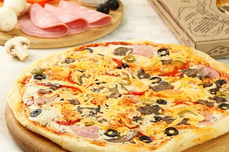 Пицца Курица-ветчина-грибы МясновЪ Шеф-повар от КуулКлевер охлажденная для запекания 29см доставка