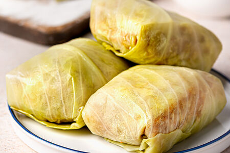 Хочется по-домашнему вкусного блюда, но при этом не тратить несколько часов на готовку? Голубцы МясновЪ созданы по классической рецептуре из отборных ингредиентов, так, как вы бы готовили их у себя дома! В основе – охлажденный фарш из говядины, свинины высшего качества и риса, бережно завёрнутый в тонкие листочки предварительно бланшированной капусты. Голубцы готовятся только из свежих овощей и фарша, не подвергавшихся замораживанию. Быстро, просто и вкусно как дома!
