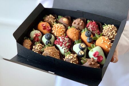 Классический набор сочной клубники, покрытой бельгийским шоколадом Callebaut. Сладкий подарок, оформленный в новогоднем стиле, добавит немного волшебства в этот новый год! Клубника в шоколаде (20 шт.), дизайнерский бокс (22х16 см), лента, брендированный пакет