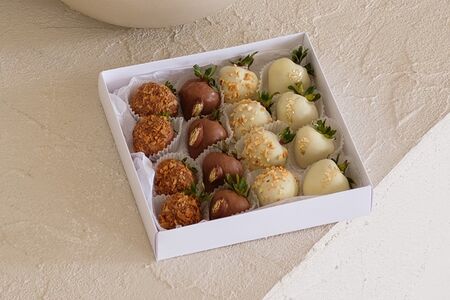 Клубника в бельгийском шоколаде (16 шт.), бокс (20х20 см), брендированная лента