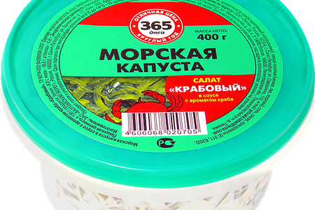 Салат из морской капусты 365 Дней Крабовый в соусе с ароматом краба, 400г доставка