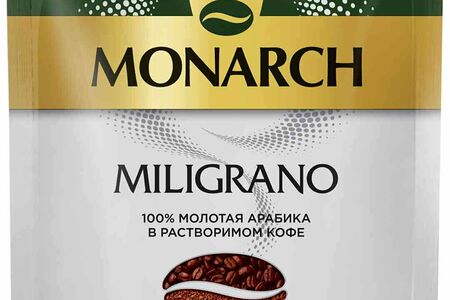 Кофе растворимый сублимированный Монарх Miligrano c добавлением кофе жареного молотого доставка