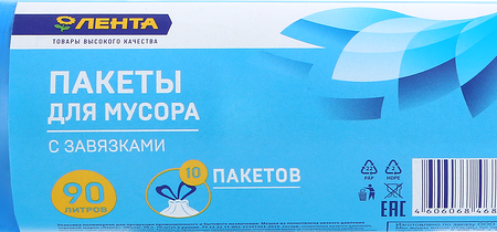 Пакеты для мусора ЛЕНТА 90л, с завязками, 10шт доставка