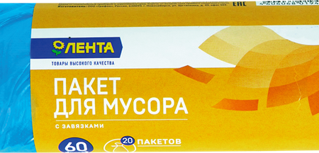 Пакет для мусора с завязками ЛЕНТА 60л 60х70см, 20шт доставка
