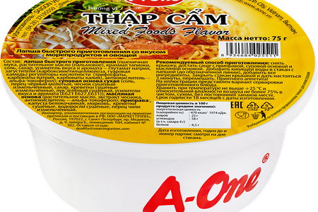 Лапша A-ONE со вкусом морепродуктов и овощей, 75г доставка