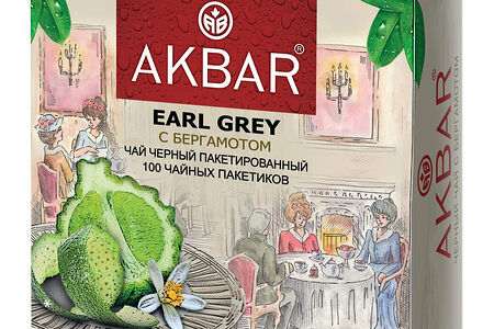 Чай Akbar Earl Grey черный байховый с ароматом бергамота, 100 пакетиков доставка