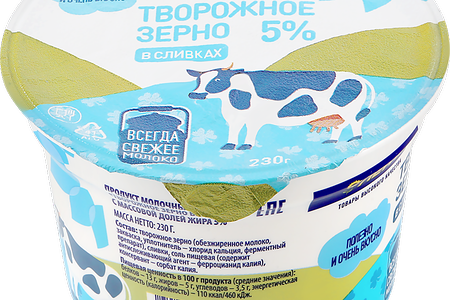 Творог зерненый ЛЕНТА со сливками 5%, без змж доставка