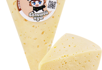 Сыр полутвердый РАДОСТЬ ВКУСА Большой куш 20%, без змж – отличный вариант для тех, кто занимается спортом, ведь в нем много полезных для организма белка и кальция. Кроме этого, в сыре пониженное содержание молочного жира, что станет приятным сюрпризом для людей, которые заботятся о правильном питании. Выразительный сырный вкус отлично раскроется на горячих тостах, в салате или канапе.