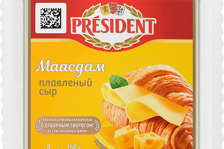 Сыр плавленый ломтевой Мааздам ТМ President (Президент) доставка