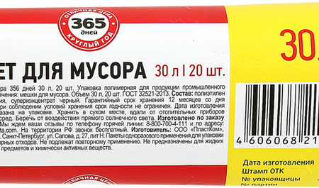 Пакеты для мусора 365 ДНЕЙ 30л черные, 20шт доставка