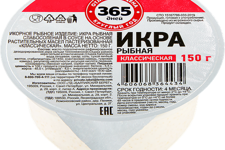 Икра рыбная 365 ДНЕЙ Классическая, 150г доставка