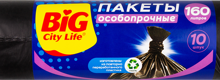 Пакеты для мусора BIG CITY LIFE особо прочные LD 80x110см, 160л, Арт. 14410065, 10шт доставка