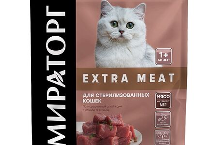 Корм сухой для стерилизованных кошек старше 1 года с нежной телятиной Extra Meat Мираторг доставка