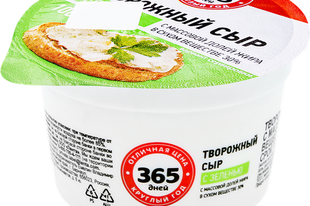 Сыр творожный 365 ДНЕЙ с зеленью 30%, без змж, 100г доставка