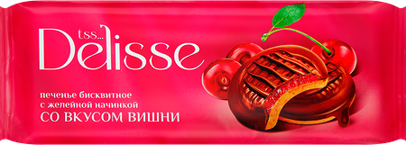 Печенье бисквитное DELISSE с желейной начинкой со вкусом вишни, 137г доставка