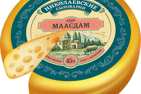 Сыр НИКОЛАЕВСКИЕ СЫРОВАРНИ Маасдам 45% без змж вес доставка