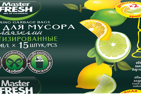 Пакеты для мусора MASTER FRESH Aroma с завязками 35л, лимон, желтые, 15шт доставка