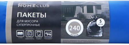 Пакеты для мусора HOMECLUB усиленные 240л, 5шт доставка