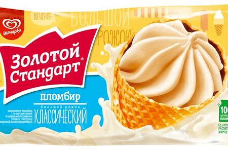 Мороженое Золотой стандарт Классический пломбир, рожок доставка