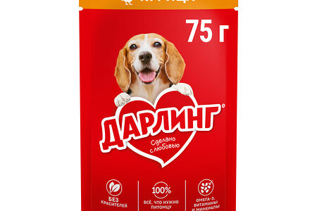 Влажный корм ДАРЛИНГ для взрослых собак, кусочки с курицей в подливе доставка