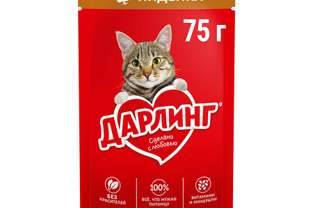 Влажный корм ДАРЛИНГ для взрослых кошек, с индейка в подливе доставка