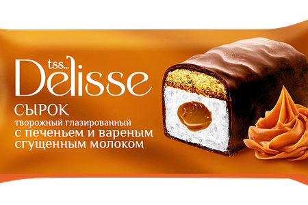 Сырок творожный глазированный DELISSE со сгущенным вареным молоком и печеньем 26%, без змж, 43г доставка