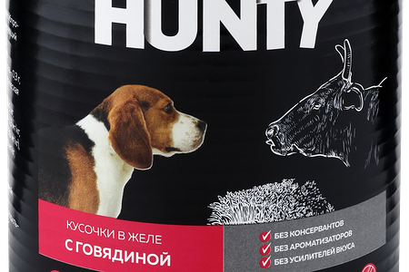 Корм консервированный для собак HUNTY сочные кусочки в желе с говядиной, 850г доставка