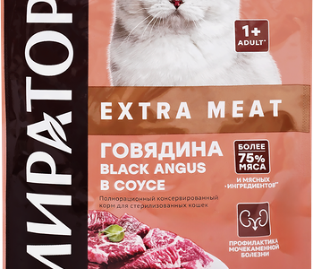 Корм влажный для кошек Мираторг Extra Meat Говядина Black Angus в соусе, для стерилизованных доставка