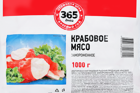 Крабовое мясо замороженное 365 ДНЕЙ (имитация), 1000г доставка