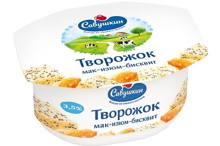 Паста творожная Савушкин Мак-изюм-бисквит 3,5% доставка