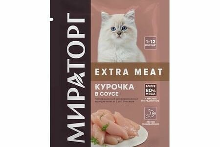 Корм влажный для котят МИРАТОРГ Extra Meat Курочка в соусе, 80г доставка