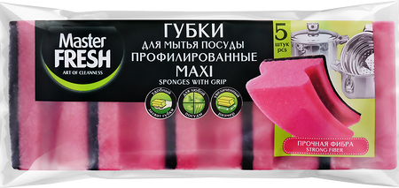 Губки для мытья посуды MASTER FRESH MAXI профилированные, 5шт доставка