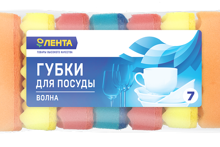 Губки для посуды ЛЕНТА Волна, 9,5х6,5х3см, 7шт доставка