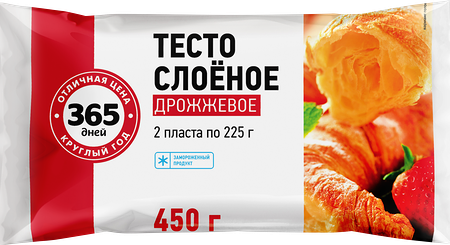 Тесто дрожжевое 365 ДНЕЙ Специальное слоеное, 450г доставка