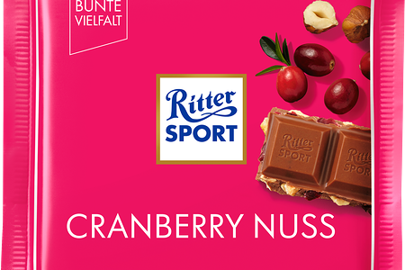 Шоколад молочный Ritter Sport с кусочками клюквы и орехом лещины доставка