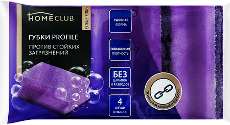 Губки для посуды HOMECLUB Extra strong Profile 9х6х4см, 4шт, в ассортименте доставка