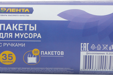 Пакеты для мусора Лента 35л с ручками 30шт доставка